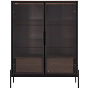 Modern Minimalist Style LED Curio Cabinet With Tempered Glass Door, Metal Legs - Black / Dark Walnut