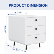 Modern Night Stand Storage Cabinet For Living Room Bedroom, Steel Cabinet With 3 Drawers, Bedside Furniture, Circular Handle - White