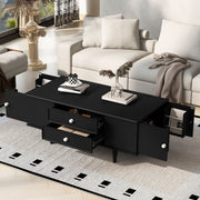 Modern Rectangle Coffee Table With Four Drawers, Wood Coffee Table With Metal Handles And Four Solid Wood Legs For Living Room - Black