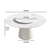 Modern Artificial Stone Round Plywood Base Dining Table, Can Accommodate 8 People, Artificial Stone Turntable (Not Including Chairs) - White / Beige