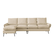Modern Sectional Technical Leather L-Shaped Sofa Couch With Convertible Ottoman - Beige