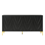 Modern Sideboard Buffet Cabinet With Handleless Press To Open Design, Carved Credenza Storage Cabinet With 4 Doors Construction - Black