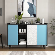Modern Sideboard Buffet Cabinet With Doors And Unique Panel Styling - Black / Blue
