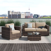 Modern Style Hdpe Wicker Seating Group With Cushions For 3 People In Brown Finish