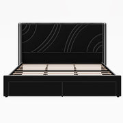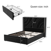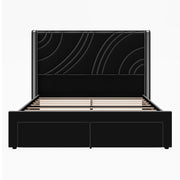 Queen Size Modern Upholstered LED Bed Frame With Storage Drawers, Velvet Platform Bed With Wingback Headboard, RGB Light, Slats Support - Black