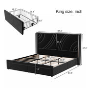 King Size Modern Upholstered LED Bed Frame With Storage Drawers, Velvet Platform Bed With Wingback Headboard, RGB Light, Slats Support - Black