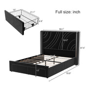Full Size Modern Upholstered LED Bed Frame With Storage Drawers, Velvet Platform Bed With Wingback Headboard, RGB Light, Slats Support - Black
