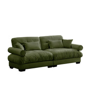 Modern Velvet Large 2 Seater Sofa & Bolstered Armrests And Pillows - Olive Green