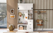 Modern Entryway Bench With Coat Rack, 3 Shelves And Drawers, 3 Sturdy Hooks, Wide Hall Tree With Storage Bench For Hallway - White