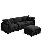 Modular L-Shaped Sectional Sofa Set With Movable Ottoman - Black