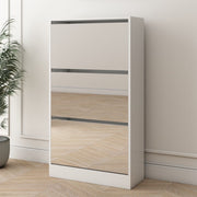 Narrow Shoe Storage Cabinet With Mirror, Wood Slim Shoe Rack 3 Tier Shoe Organizer For Home And Apartment - White