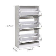 Narrow Shoe Storage Cabinet With Mirror, Wood Slim Shoe Rack 3 Tier Shoe Organizer For Home And Apartment - White