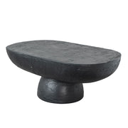 - Modern and Organic Design: This coffee table features a long oval top, a rounded pedestal base, and a bold colorway, combining modern and organic motifs.