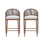Outdoor Counter Height Aluminum Frame Counter Stools With Scallop Shaped Backrest & Water Resistant Cushions (Set of 2) - Maple