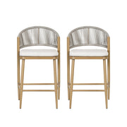 Outdoor Counter Height Aluminum Frame Counter Stools With Scallop Shaped Backrest & Water Resistant Cushions (Set of 2) - Teak