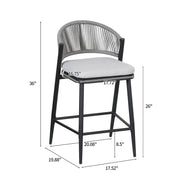 Outdoor Counter Height Metal Frame Counter Stools With Scallop Shaped Backrest & Water Resistant Cushions (Set of 2) - Matte Gray