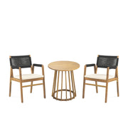 Outdoor 3 Pieces Dining Set With Cushions - Teak / Black Rope