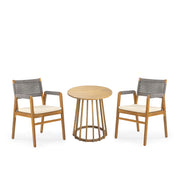Outdoor 3 Pieces Dining Set With Cushions - Teak / Gray Rope