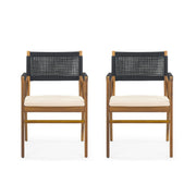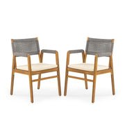 Outdoor Acacia Wood Dining Armchair With Cushion (Set of 2)