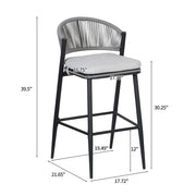 Outdoor Bar Height Metal Frame Counter Stools With Scallop Shaped Backrest & Water Resistant Cushions