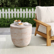 Outdoor / Indoor, Lightweight Concrete Side Table With Travertine - Beige
