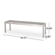 Outdoor Modern Aluminum Dining Bench With Faux Wood Seat, Durable And Elegant Design - Gray / Silver