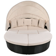 Outdoor Rattan Daybed Sunbed With Retractable Canopy Wicker Furniture, Round Outdoor Sectional Sofa Set - Black Wicker Furniture Clamshell Seating With Washable Cushions, Backyard, Porch - Beige