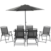 Outsunny - 8 Piece Patio Dining Set With Table Umbrella, 6 Folding Chairs And Rectangle Dining Table, Outdoor Patio Furniture Set - Black