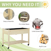 Outsunny - Raised Garden Bed, 47" x 22" x 33", Elevated Wooden Planter Box With Lockable Wheels, Storage Shelf, And Bed Liner For Backyard, Patio - Natural