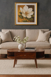 - Artisan Furniture Solid Wood Chestnut Oval Coffee Table with 1 Drawer - This stylish oval coffee table is crafted from solid wood, combining mid-century modern charm with functional design. Featuring a spacious tabletop, 2 open storage slots, and a single drawer, it offers ample space to keep your living room essentials organized. The nordic legs add a touch of retro elegance, making this coffee table a versatile addition to both contemporary and classic interiors.