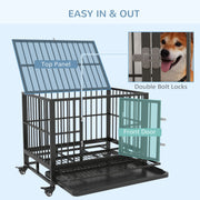 Pawhut - 36" Heavy Duty Dog Crate Metal Cage Kennel With Lockable Wheels, Double Door And Removable Tray - Gray