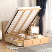 Queen Size Platform Bed With Underneath Storage And 2 Drawers - Natural