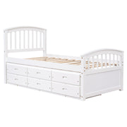 Platform Storage Bed Solid Wood Bed With 6 Drawers