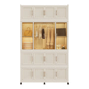 Portable Wardrobe Closet Storage Organizer With 17 Magnetic Doors, 17 Cubes, Hanging Rod & 6 Hangers - Creamy White