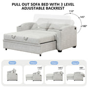 Pull Out Sofa Bed Modern Chenille Convertible Loveseat Sofa With Adjsutable Backrest, 2 Pillows, Cup Holders, USB Ports For Living Room, Apartment - White / Gray