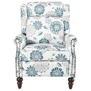 Push Back Recliner Chair Upholstered With Classic Wing Back And Solid Gourd-Shaped Legs For Living Room - White / Blue