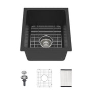 Quartz Composite Undermount Single Bowl Kitchen Sink - Black