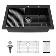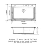 Kitchen Sink 33" X 22" Granite Composite Drop In Sink With Durable Construction - Black