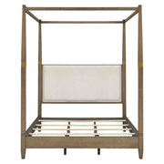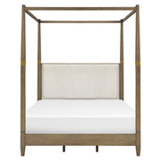 Queen Canopy Bed Frame With Upholstered Headboard - Brown
