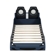 Race Car Shaped Twin Platform Bed With LED Lighting And Upholstered Backrest Construction - Blue