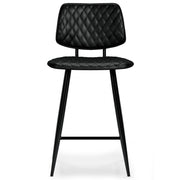 - Features comfortable padded seat and back with Quilted diamond pattern and piping detail, black powder coated metal frame, legs and foot rest