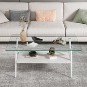 Rectangle Coffee Table With Tempered Glass Top And Shelf, Modern Table For Living Room