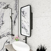 Rectangle Medicine Cabinet Mirror Bathroom Mirror With Storage Wall Mounted Medicine Mirror Cabinet With LED - Black