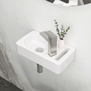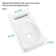 Rectangle, Wall Mount Bathroom Sink & Single Faucet Hole - White