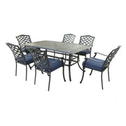 Rectangular 6 Person 68" Long Aluminum Dining Set With Cushions - Navy Blue