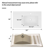 Rectangular Single Vanity Top With 1 Faucet Hole And Overflow, 32" X 18", Spacious Left Countertop For Storage - White