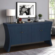 Refined Industrial 4 Door Credenza With Wooden Arc Legs & Bronze Clasps, Advanced Storage Design - Navy Blue