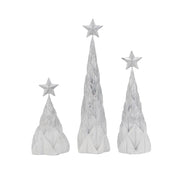 Resin / Foil Christmas Tree With Star Top (Set of 3) - White / Silver