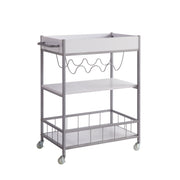 Rolling Kitchen Cart With Three Tier Storage And Four Wine Bottle Rack - White / Silver Metal