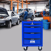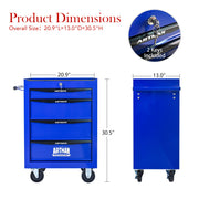 Rolling Metal Tool Chest With 4 Drawers, 20" Steel Storage Cabinet With Ball Bearing Slides - Black / Blue